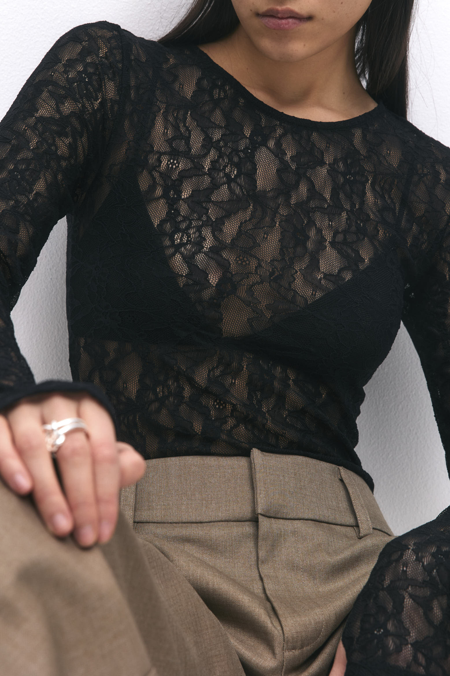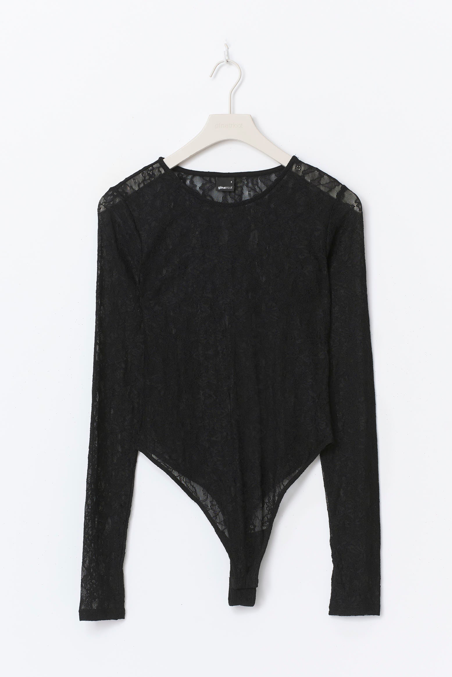 Langärmeliger Body aus Spitze mit einem Rundhalsausschnitt.
