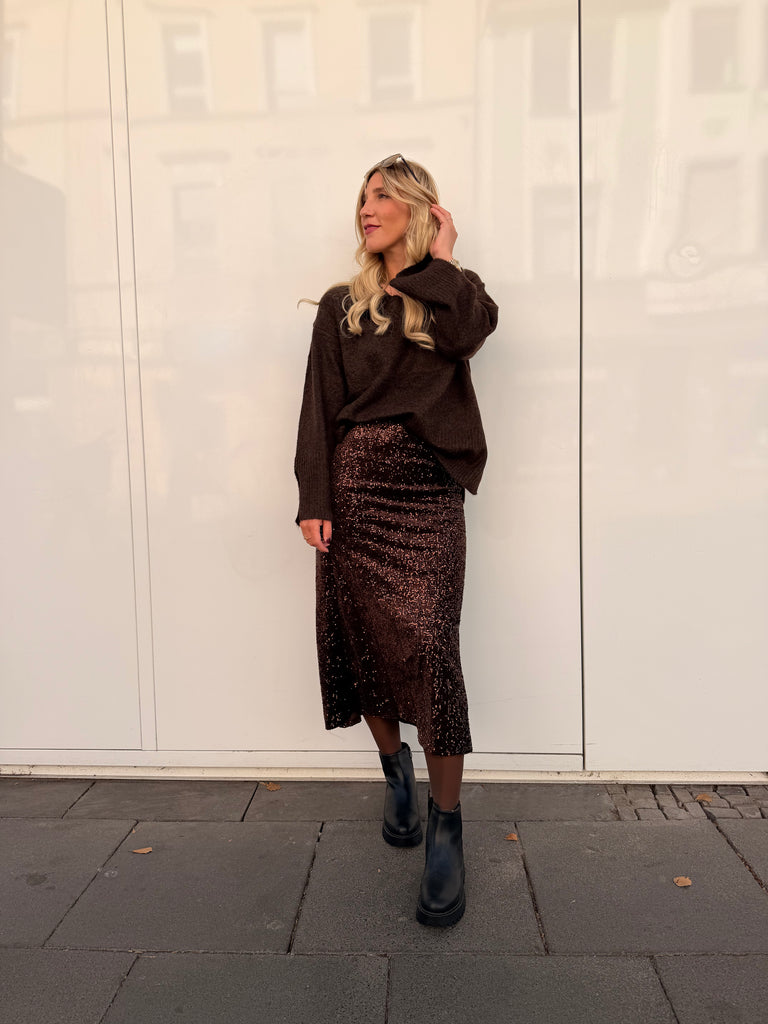 Pailletten-Midi-Rock braun