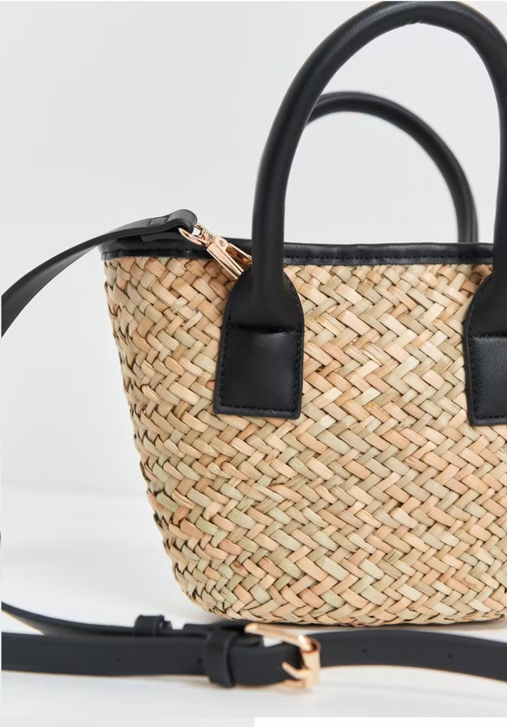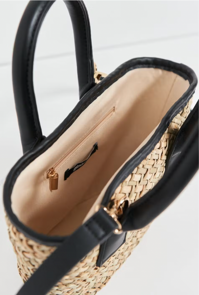Hergestellt aus echtem Stroh, daher kann die Farbe von Tasche zu Tasche variieren.