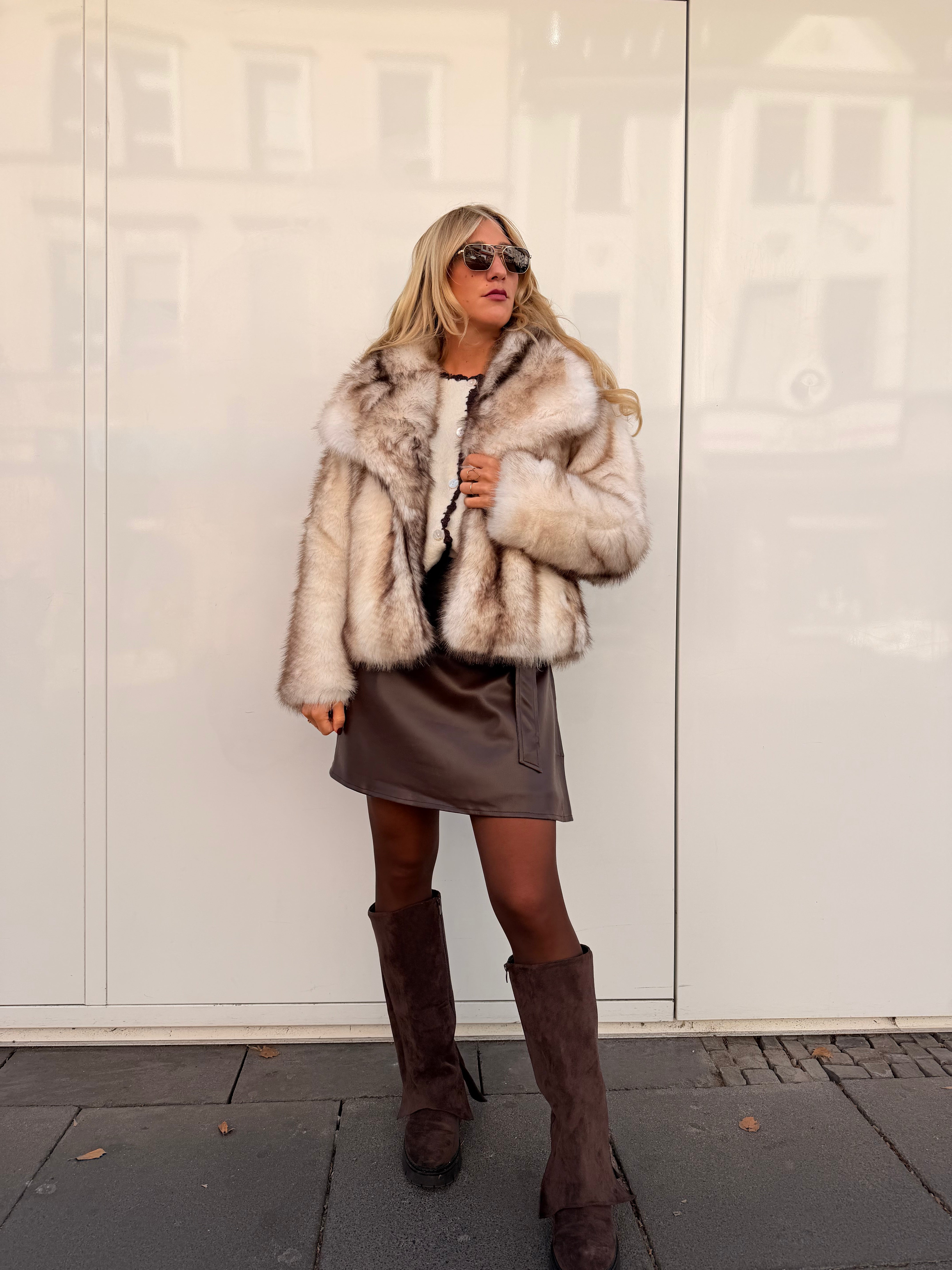 Felljacke kurz Beige/Braun