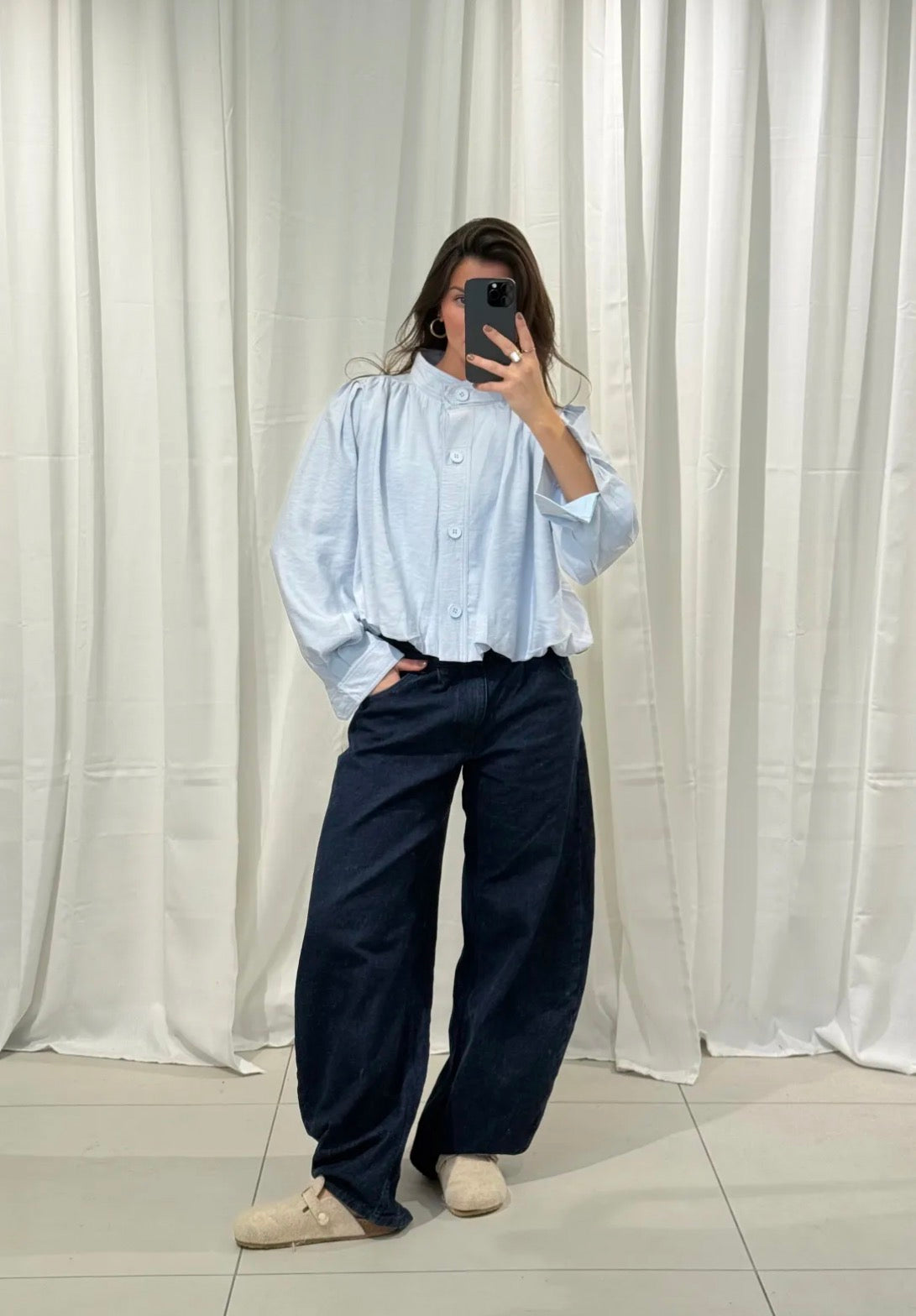 - Carina ist 170 cm groß und trägt Größe S/M