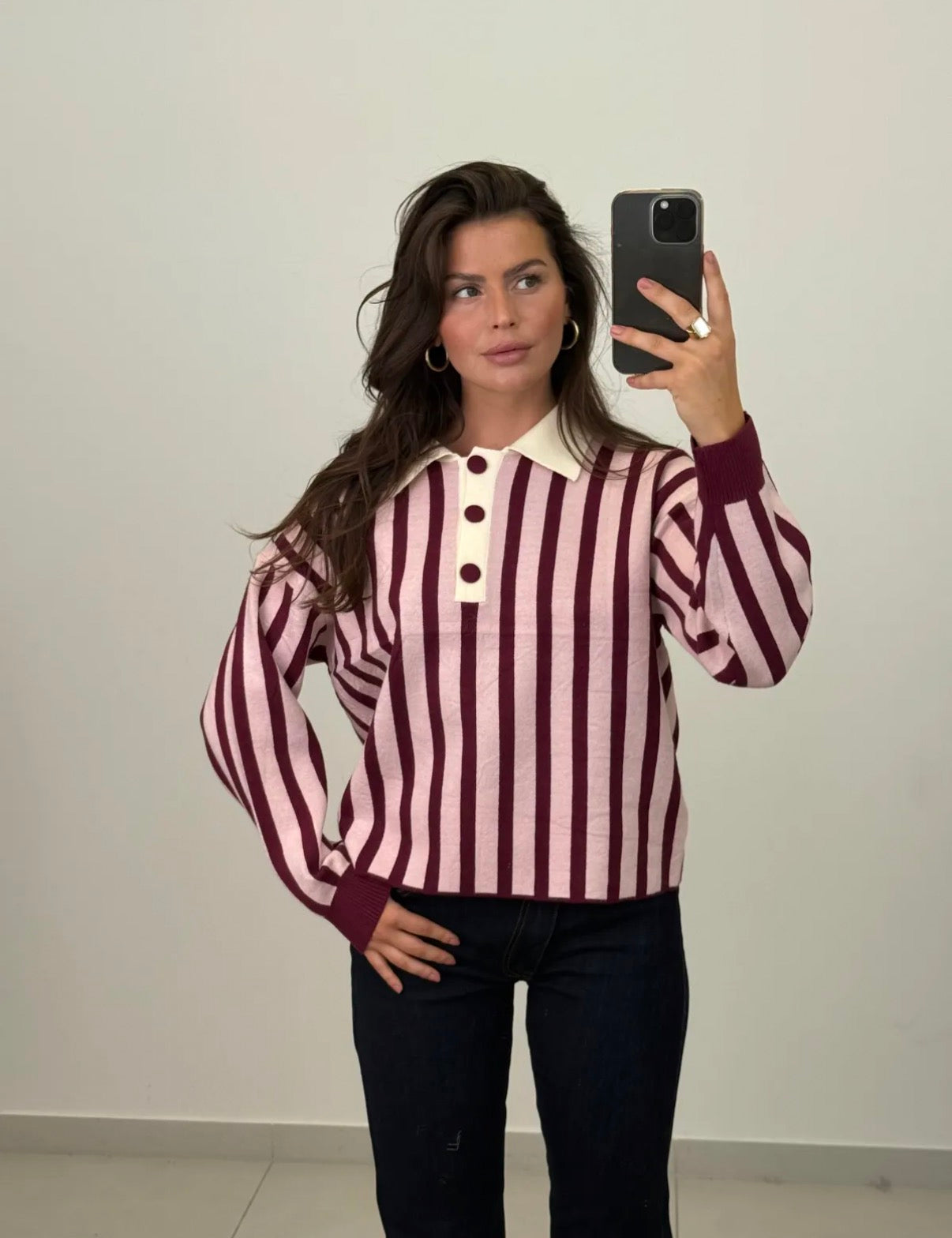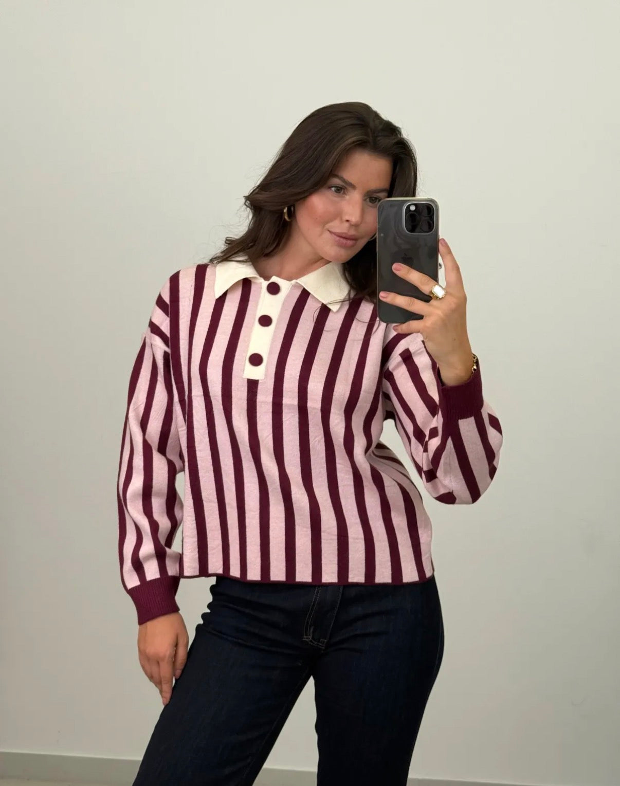 - Angesagtes Strick Longsleeve mit weißem Kragen