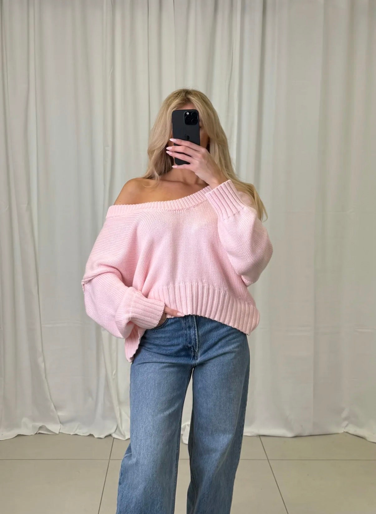 - Der Pullover ist Off-Shoulder geschnitten