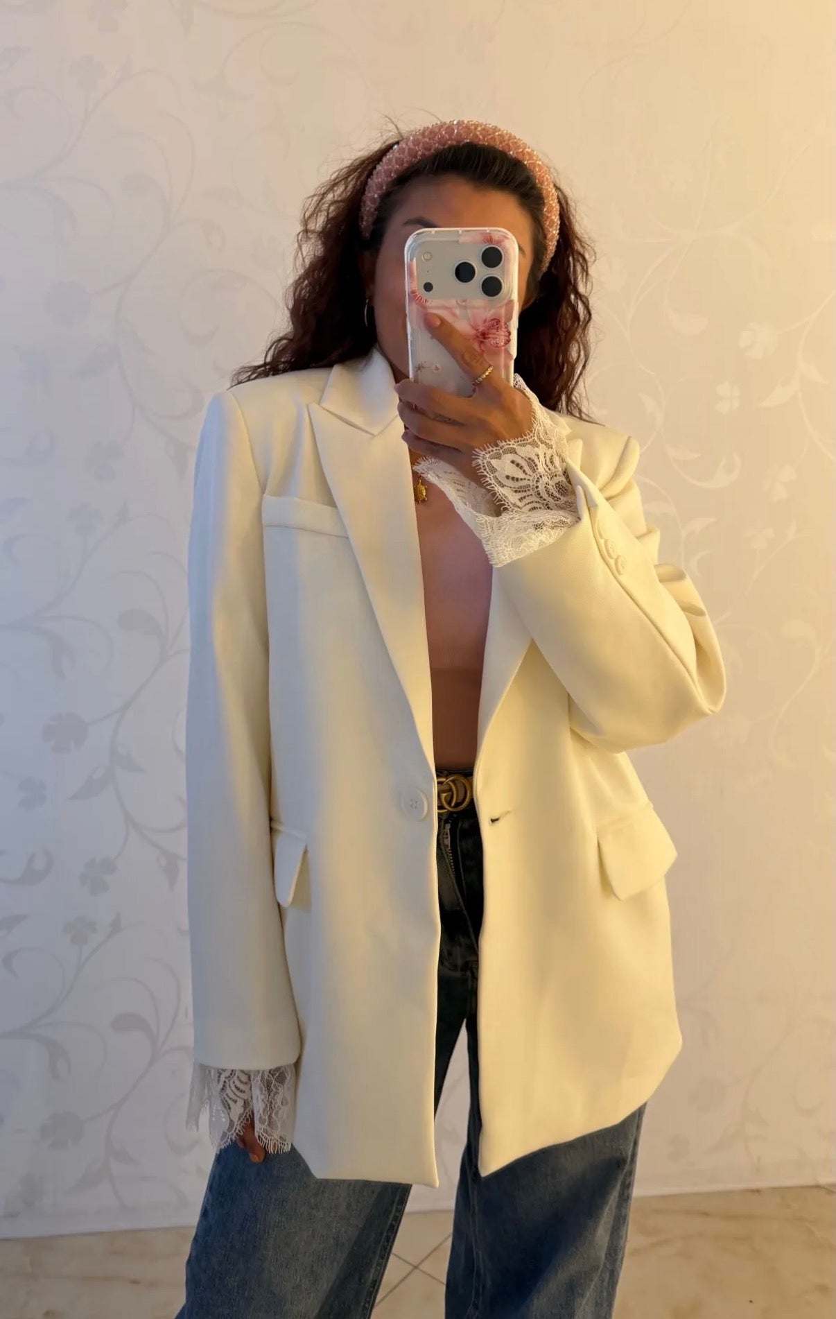 Oversize Blazer Spitze Hellgelb